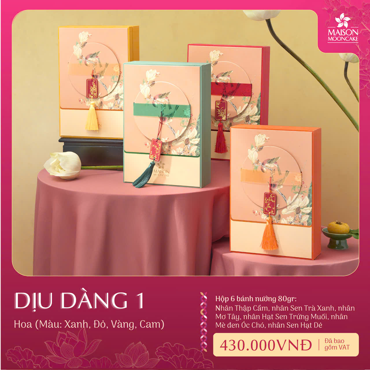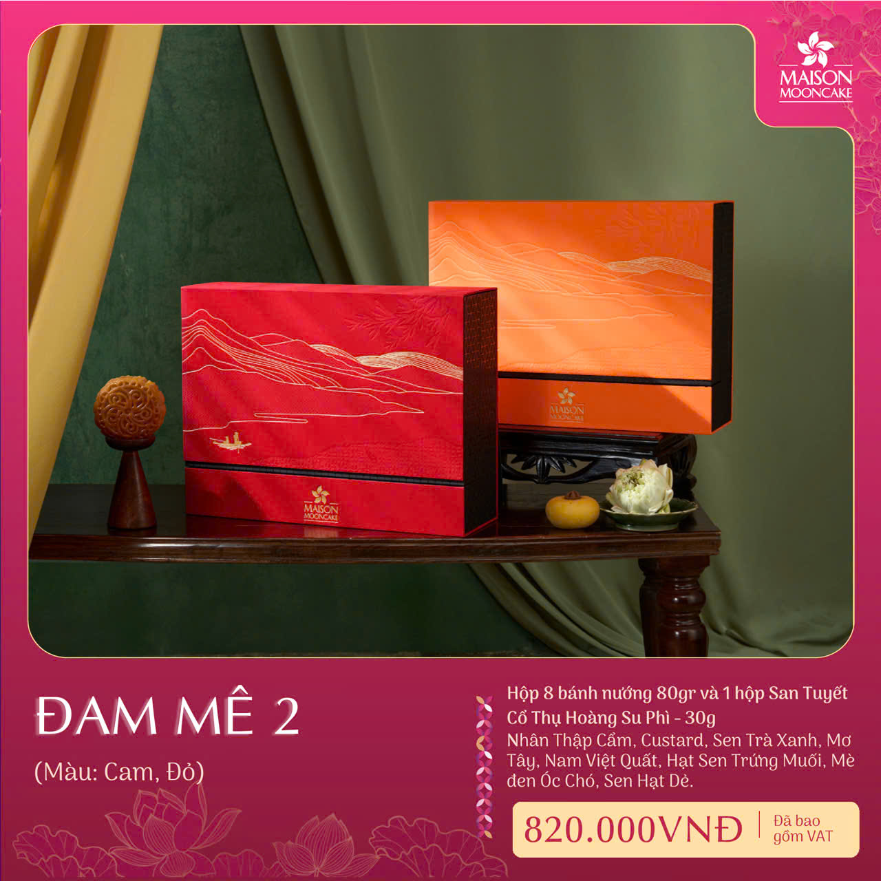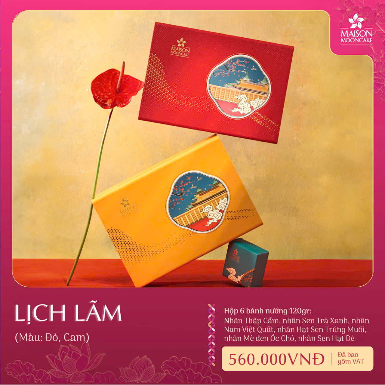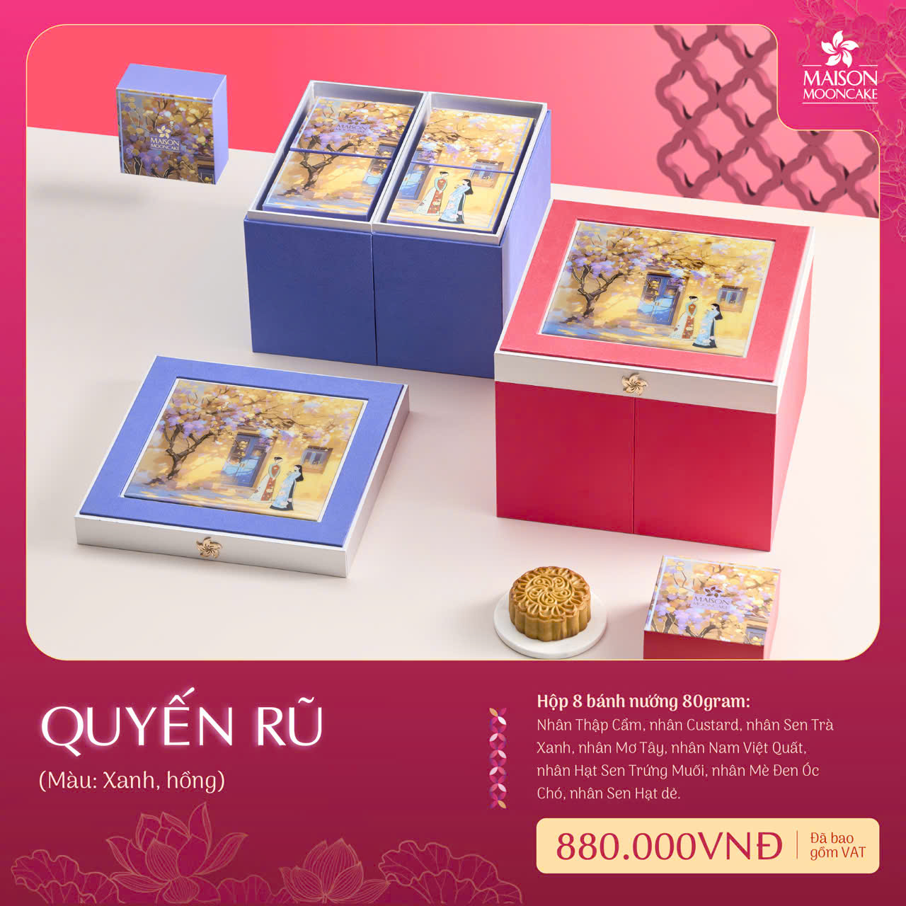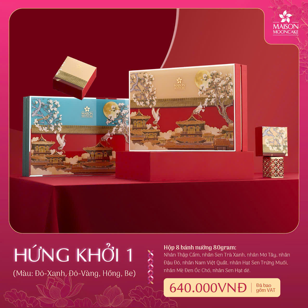 - Nhân bánh: Thập cẩm – Custard – Sen trà xanh – Mơ tây – Hạt sen long nhãn trứng muối – Hạt sen trứng muối – Mè đen óc chó – Sen hạt dẻ & Collagen82X