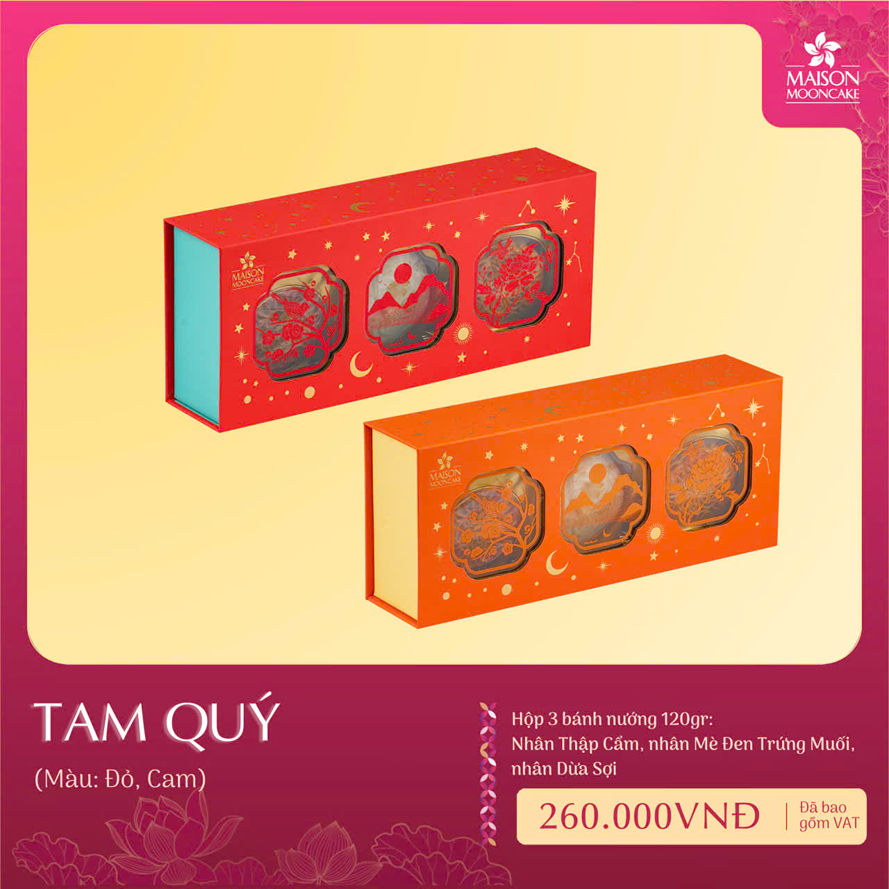- Nhân bánh: Thập cẩm – Mè đen trứng muối – Dừa sợi